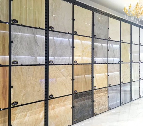 Wide variety of ceramic, porcelain, and mosaic tiles for floors, walls, and decorative purposes.